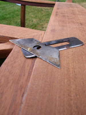 Gotta love a two year old who knows how to work a sanding block!While she was busy playing in the garden, H and I tackled, what I think was the most tedious part of the whole preparation process.... getting the old varnish out of the cracks and crevices... uggg, soooooooo slow!